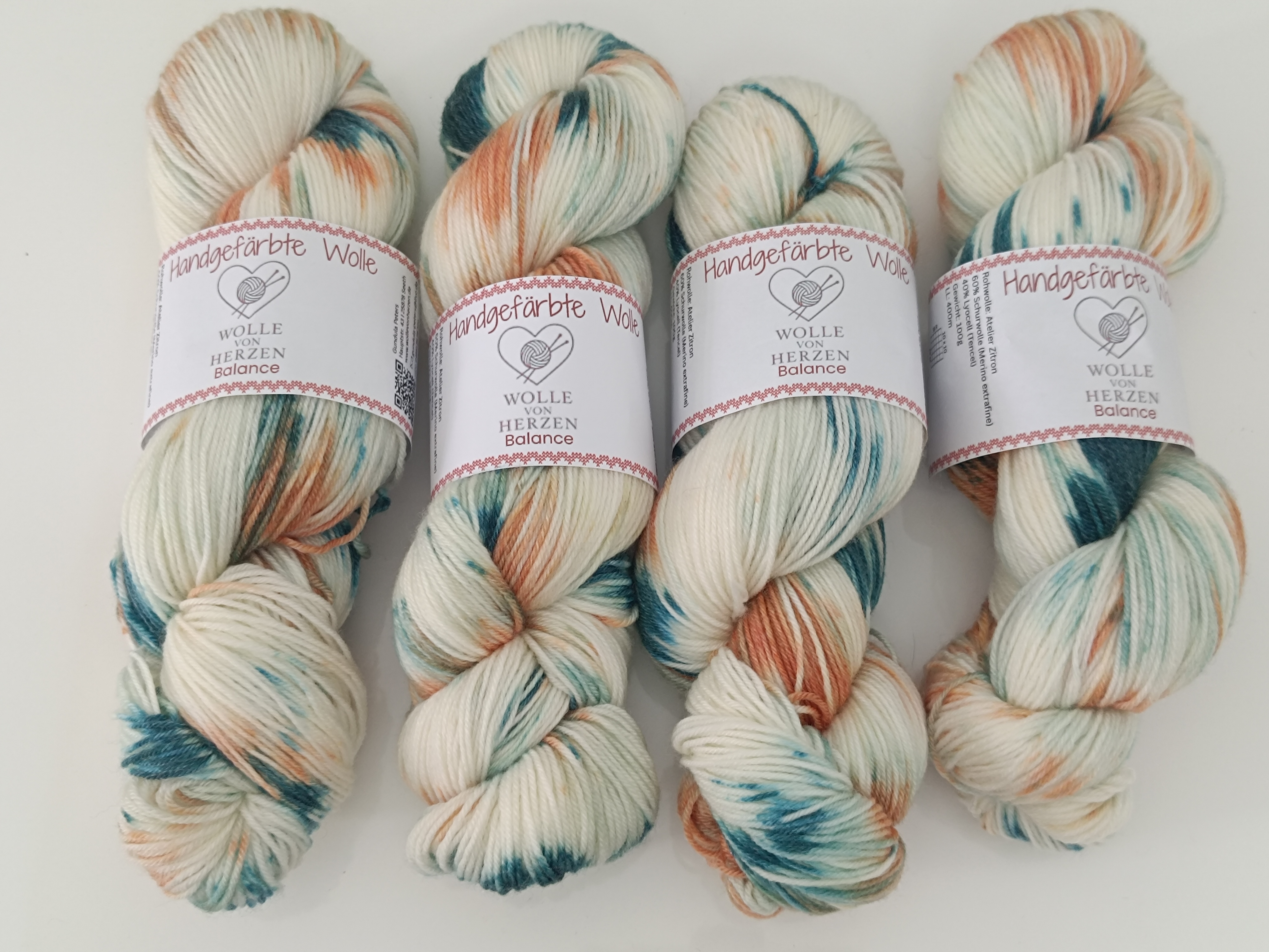 Die Wolle wurde mit professionellen Säurefarben unter Zugabe von Essigessenz handgefärbt.