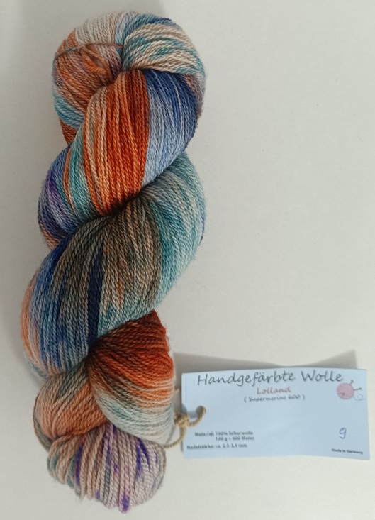 Die Wolle wurde mit professionellen Säurefarben unter Zugabe von Essigessenz handgefärbt.